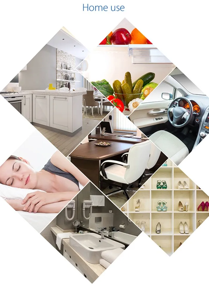 Car odor cleaning Refrigerator/ freezer Food storage Bedroom Food cabinet Shoes cabinet Toilet Smoking room