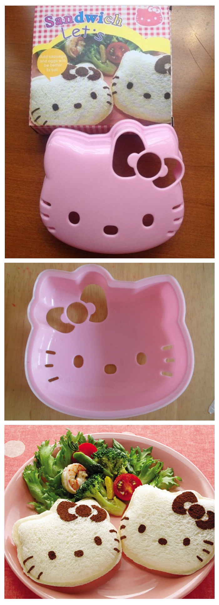 Цельный дизайн, простая форма, простая в использовании форма. Легко сделать хлеб для бутербродов с рисунком hello kitty. Сэндвич HELLO KITTY-это полностью, и он не распущен. Прежде чем сделать его, положите хлеб в микроволновую печь в течение 3-5 секунд, чтобы увеличить связь хлеба! Может быть фаршированный дизайн, более сбалансированный пищевой потребление. Дизайн продукта является новым и красивым, и это более забавным и счастливым в процессе изготовления!