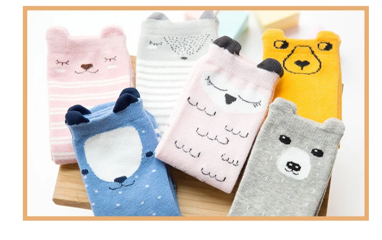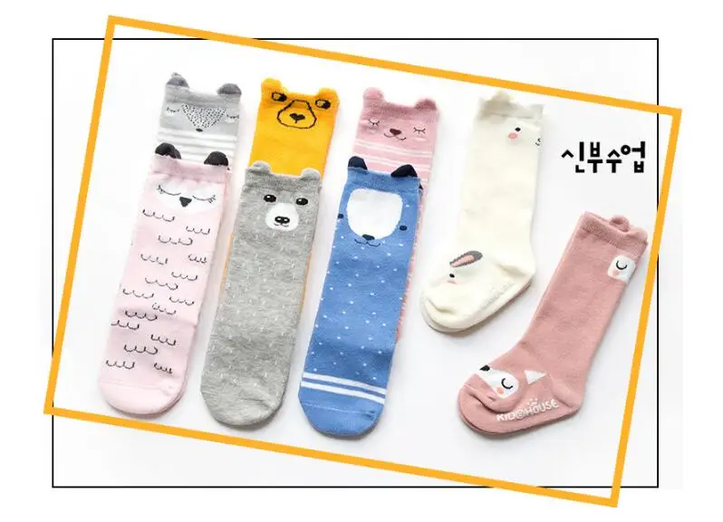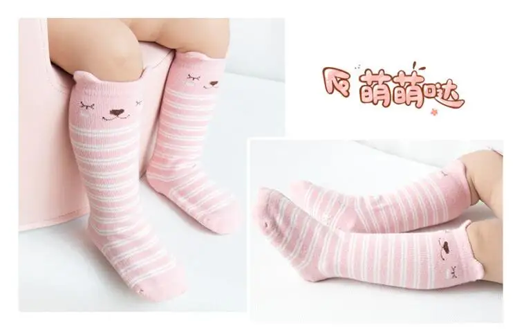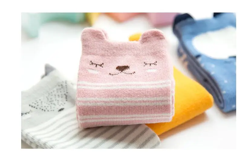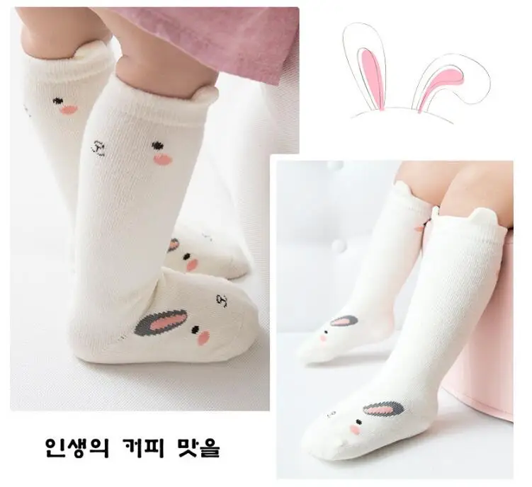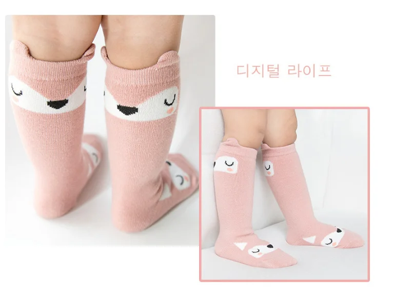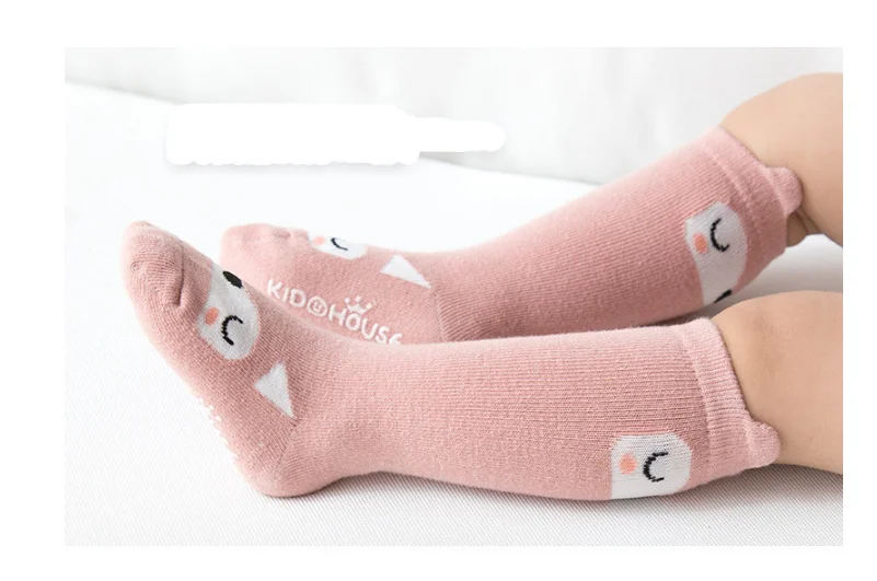 1 пара детских зимних носков с рисунками из мультфильмов, Нескользящие хлопковые длинные носки с животными для маленьких мальчиков и девочек, гольфы для новорожденных и малышей 0-24 месяцев