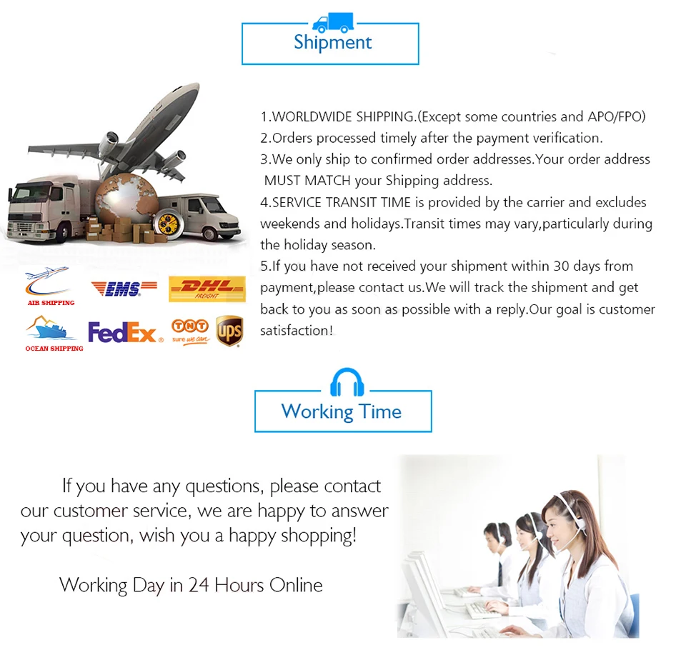 Независимо от того, что, перед вашим заказом, пожалуйста, не стесняйтесь связаться со мной, Я проверю лучший способ доставки для вас.