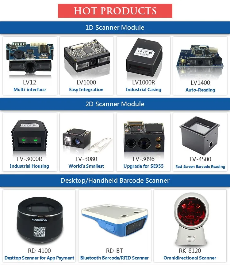 A4: Модуль сканера штрих-кодов, Bluetooth сканер штрих-кода/RFID сканер, Настольный/ручной сканер штрих-кода.