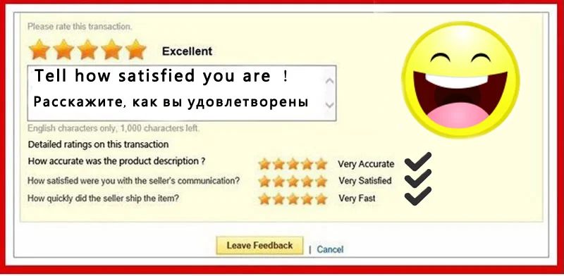 Пожалуйста, оставьте положительные отзывы и 5 звезд, если вы удовлетворены нашими продуктами и услугами. Если вы не удовлетворены нашей продукцией или обслуживанием. Пожалуйста, свяжитесь с нами, чтобы решить проблемы, а не оставить негативные отзывы. Спасибо за сотрудничество.