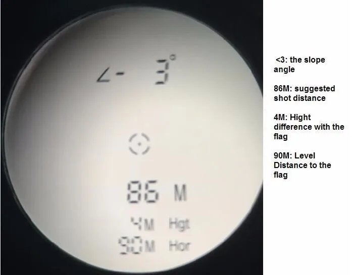 Замок флага гольфа работает по принципу: ближайшие объекты заранее для дальноискателя. Нажимайте клавишу загрузки, перемещая немного влево и вправо вокруг флага или полюса гольфа, он начинает сканирование, а так как флаг или полюс для гольфа являются ближайшими объектами для пользователя на поле для гольфа, он будет заблокирован и расстояние будет отображаться на дальномер. Функция наклона дает Предполагаемое расстояние в соответствии с углом наклона, градусом угла, разницей в вертикальной высоте и расстоянием уровня отображается одновременно.