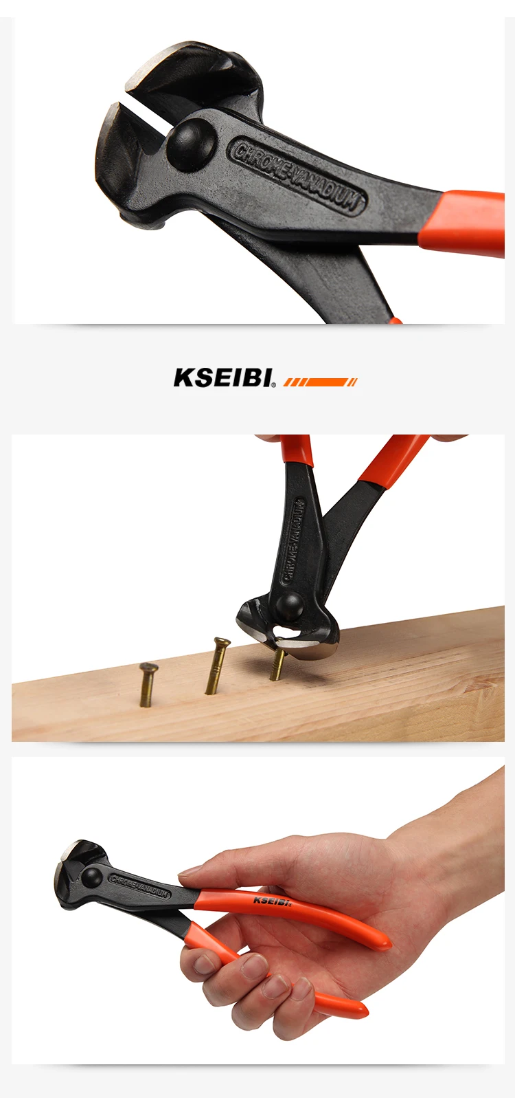 KSEIBI концевые режущие плоскогубцы/кусачки, идеально подходят для резки проводов, кабелей, арматуры и других материалов. Эти плоскогубцы являются конечной долговечностью. Режущая кромка в стиле кусачки-это нож и наковальня в стиле, Идеальная вязка и длительный срок службы режущей кромки. Инструмент также имеет полезную площадь дробления.