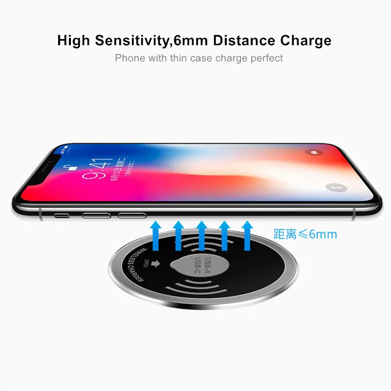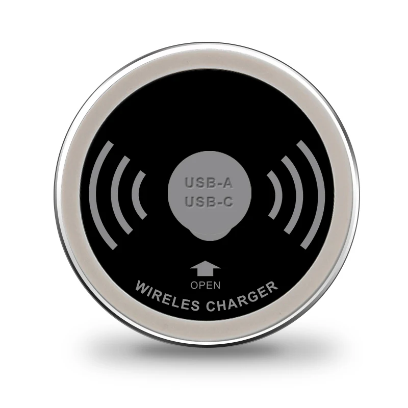 Легко установить, вставить настольное Беспроводное зарядное устройство водонепроницаемый Подходит для кафе, ресторанов, аэропорта, стола и т. д. Примечание: используйте зарядное устройство USB, адаптер должен использоваться на выходе 5 В/3 А. Диаметр отверстия стола в 60 мм будет в порядке.