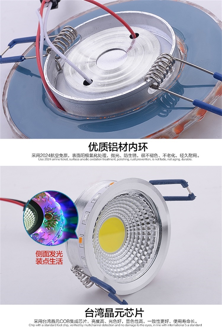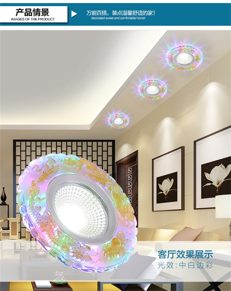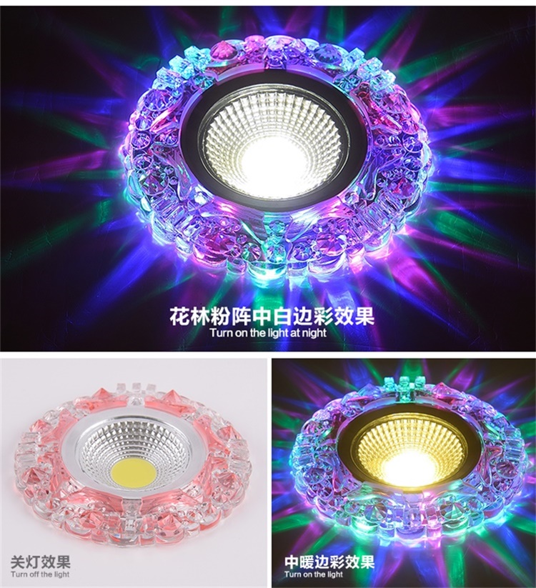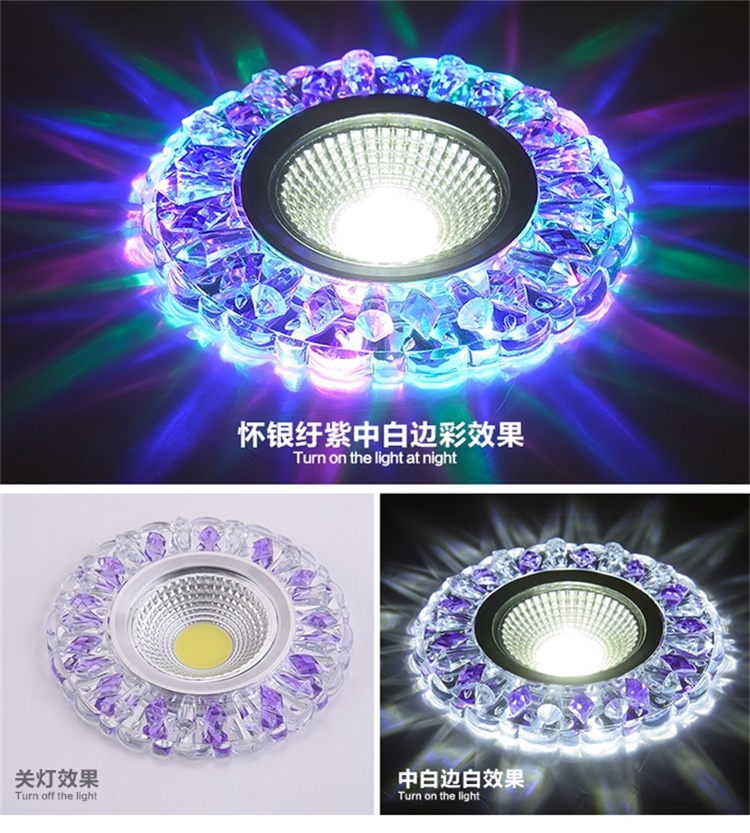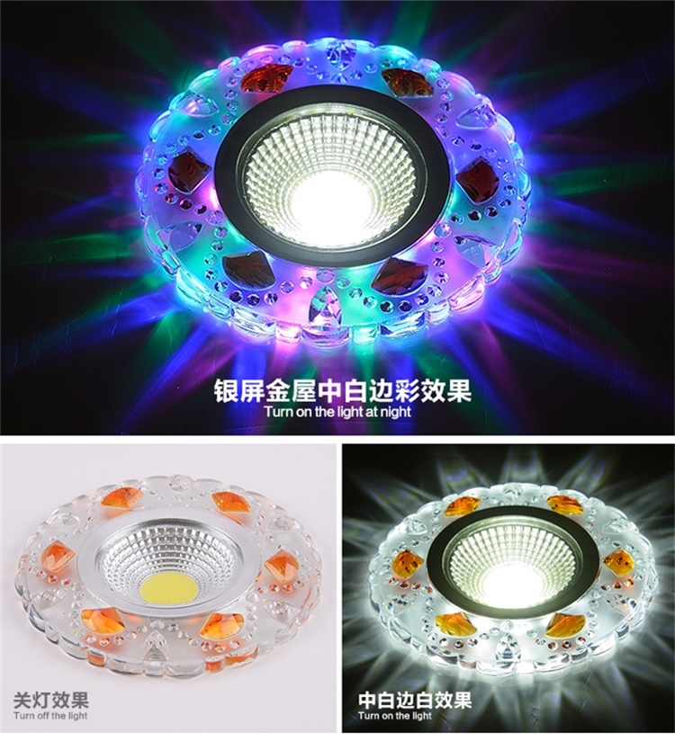 Современный 4 Вт COB светодиодный светильник, лампен, кристалл, светодиодные потолочные лампы 3 Вт + 1 Вт, внутренний светодиодный декоративный светильник, двойной цвет, боковой светильник для дома Технические характеристики Светильник ing Источник света: 3 Вт светильник источник света + 1 Вт вспомогательный светильник источник Мощность фактора: 80% Светодиоды Количество 3 предмета в комплекте Материал: алюминий + кристалл Вход напряжение: AC85-265V Потребляемая мощность: 4 Вт Переменный ток 290mA Красный, зеленый, синий) Угол пучка: 120 Размер изделия: 90*30 мм Световой 270lm Индекс цветопередачи: Ra80 Размер отверстия: 75 мм Рабочая температура: от-20 до 50 Длительный срок службы: 50000 часов Защита от влаги: IP44 Сертификаты: ROHS и CE Форма круглый