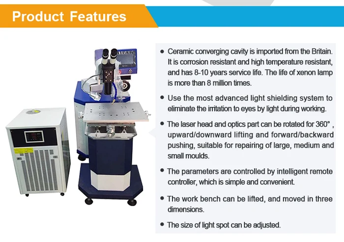 Пресс-форма ремонт сварочный аппарат б/у пТехнология лазерной сварки с высокой концентрацией тепловой энергии с фиксированной точкойЭффективно справляется с некоторыми небольшими повреждениями части сварки и ремонтных работ прессформы, такими как: все виды трещин прессформы, песчаные отверстия, cУгол наклона,Пресс-формаЛетающий край,Уплотнительная кромка и другие мелкие части пластырей, это делает традиционную технологию сварки при ремонте дефектов тонкой поверхности сварки. Эта серия предназначена дляЭлектронной промышленности иЮвелирной промышленности, представить передовые технологии Германии,Имеет эргономичный дизайн и изготовлен из международного топаАксессуарыЭта система стабильна, проста в эксплуатации. Его можно использовать для заполнения отверстий на ювелирных изделиях и электронных компонентах, сварных песочных глазках и раббете.