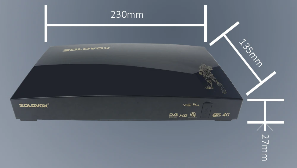 SOLOVOX V8S PLUS имеет размер 230x135x27 мм, вполне удовлетворительный.