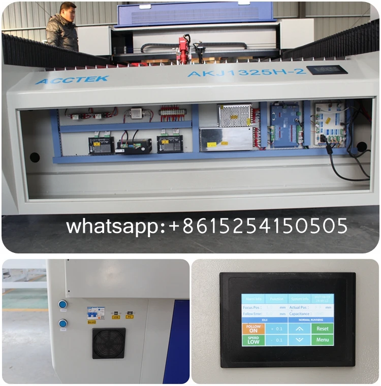 AccTek AKJ1325H metal and non metal laser cutting machine can cut both metal and non metal. It with following up system,which can keep best focal length during working. This laser cutter cutting with fast speed since it was installed with servo motors.