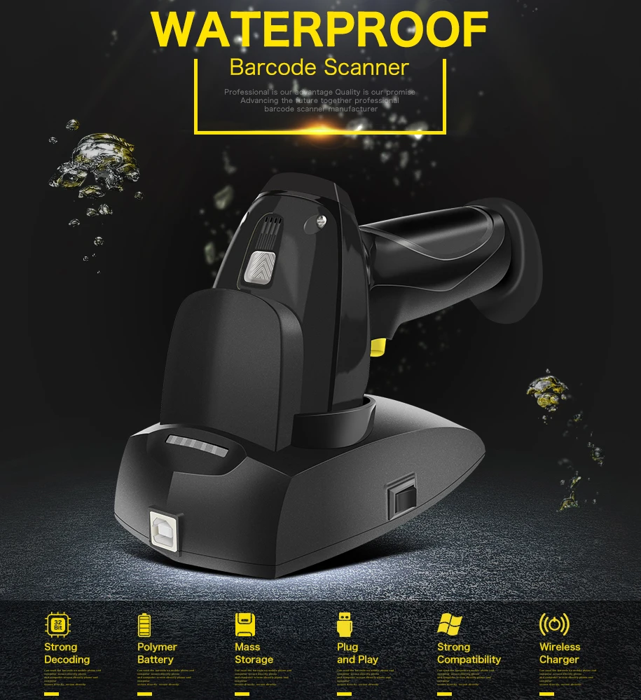 NT-i6 IP67 Водонепроницаемый 2,4G беспроводной CCD сканер штрих-кода с подставкой