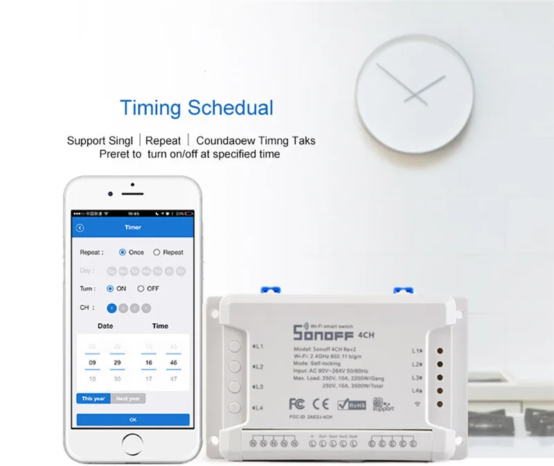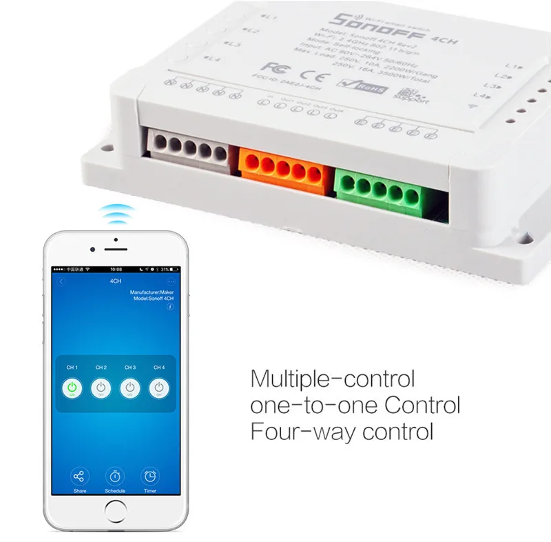 Sonoff 4ch R2 смарт-переключатель 4 канала без 433 МГц 2,4G Wifi Пульт дистанционного управления смарт-модули автоматизации 10A бытовая техника