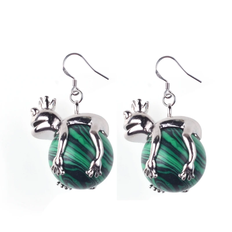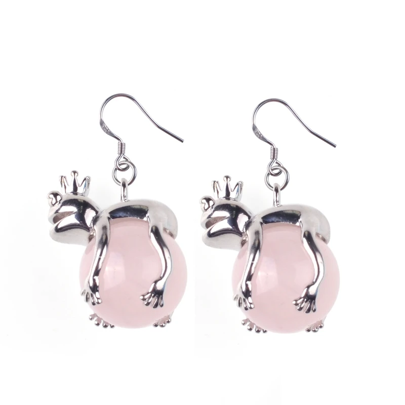 2017 Природные серьги камень аметист лягушка принц мультфильм изображение бирюза 925 стерлингового серебра леди популярных ювелирных подарок для женщины