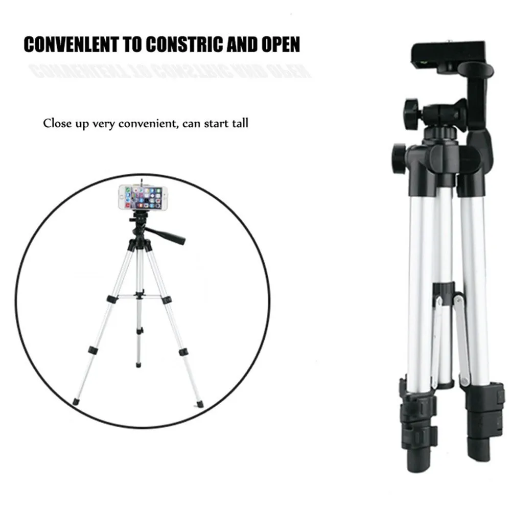 Штатив 50 "дюймовый алюминиевый штатив для камеры + Универсальный держатель для смартфона + Bluetooth беспроводной пульт дистанционного управления затвором камеры Описание продукта: Удобнее 50 "дюймовый штатив-Трипод -Нескользящие ножки и индикатор уровня пузырьков -Он имеет регулируемый центральный шест и поставляется с водостойкой переноски чехол. Мини-штатив для воздушных шаров является легким и мобильном телефоне с его алюминиевый сплав ноги и 3-сторонний выход с полукруглой потайной головкой. Универсальным креплением для смартфона -Удобное крепление -Мягкая ручка, чтобы избежать повреждения смартфона -Регулируемый адаптер для телефона подходит для всех телефонов шириной от 55 мм до 85 мм. Беспроводной с дистанционным управлением по Bluetooth -Беспроводной Bluetooth пульт дистанционного управления работает для большинства Androids и смартфонов Apple iPhone -Для загрузки приложения не требуется -С bluetooth-подключением вы можете начать использовать беспроводной пульт ДУ -Легкий и легко хранить в кармане или в качестве брелка -Фотографии могут быть сняты до 30 футов Посылка включает в себя: -1x50 "дюймовый штатив -1 держатель для телефона -1 пульт дистанционного спуска затвора Bluetooth Примечание: пульт дистанционного управления не включает батарею