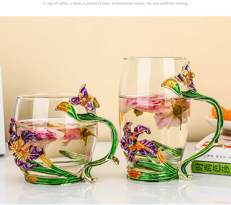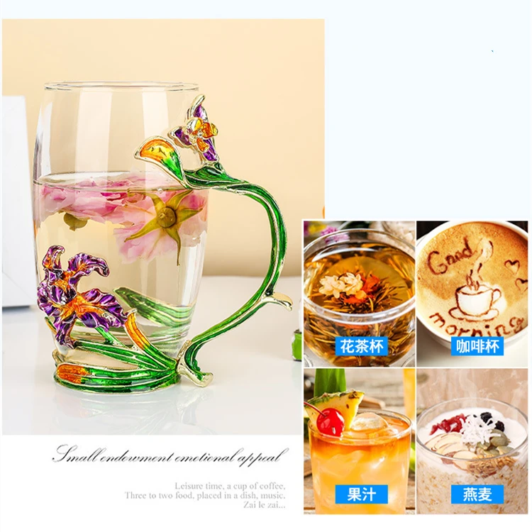Цветные эмалированные стеклянные кофейные кружки с ложкой чашки для чая молока цветок ласточкин хвост в европейском стиле посуда для напитков