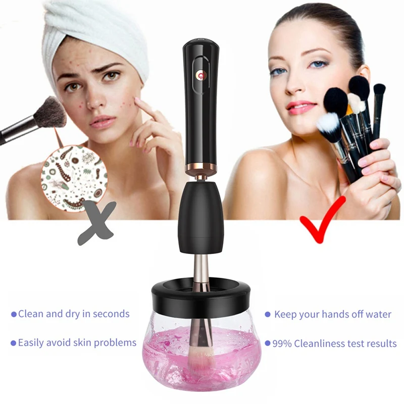 [Простой в использовании очиститель кистей для макияжа]: всего 3 шага легко использовать этот Электрический Очиститель и сушилка для макияжа. 1. Прикрепите кисть к вертушке. 2. Налейте воду и мыло в миску. 3.Dip & spin для очистки, поднятия и отжима, чтобы высушить, этот автоматический очиститель для макияжа освободит ваши руки и сэкономит ваше много времени.