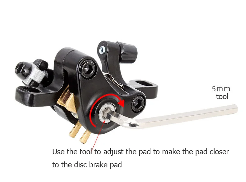 Коврик станет тоньше после использования в течение определенного периода времени. Используйте инструмент для затягивания колодки, чтобы сделать колодки ближе к дисковой тормозной колодки, чтобы сократить ход торможения и поддерживать тормоз.