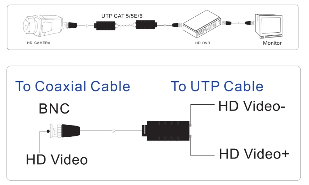 STK201P-HD-A1Video balun-это пассивное (не усиленное) устройство, которое позволяет передавать HD видеосигнал CCTV в режиме реального времени через экономически эффективный неэкранированный кабель с витой парой (UTP). TT-201P-HD-A1Совместим со всеми аналоговыми камерами HD-TVI, HD-CVI, AHD и CVBS.