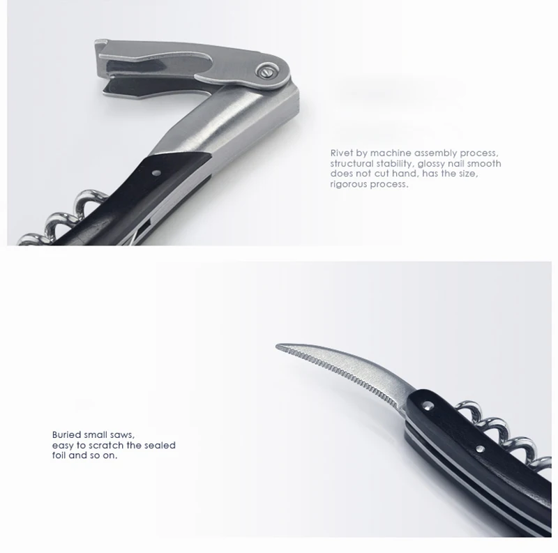 -Складной карманный нож с штопом -Штопор для вина с деревянной ручкой -Кованые болты из нержавеющей стали -Размер складывания: 4 1/2 дюйма, разворачивается размер: 8 1/2 дюйма -Хорошее качество, привлекательный продукт, который вы с гордостью подарите