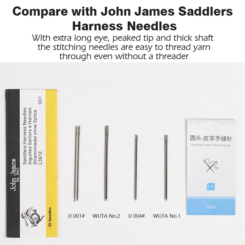 ---- Прочные иглы с большим ушком: изготовлены из нержавеющей стали, они достаточно прочные для работы с кожей, а также для ремонта толстой одежды или обуви, виниловой обивки