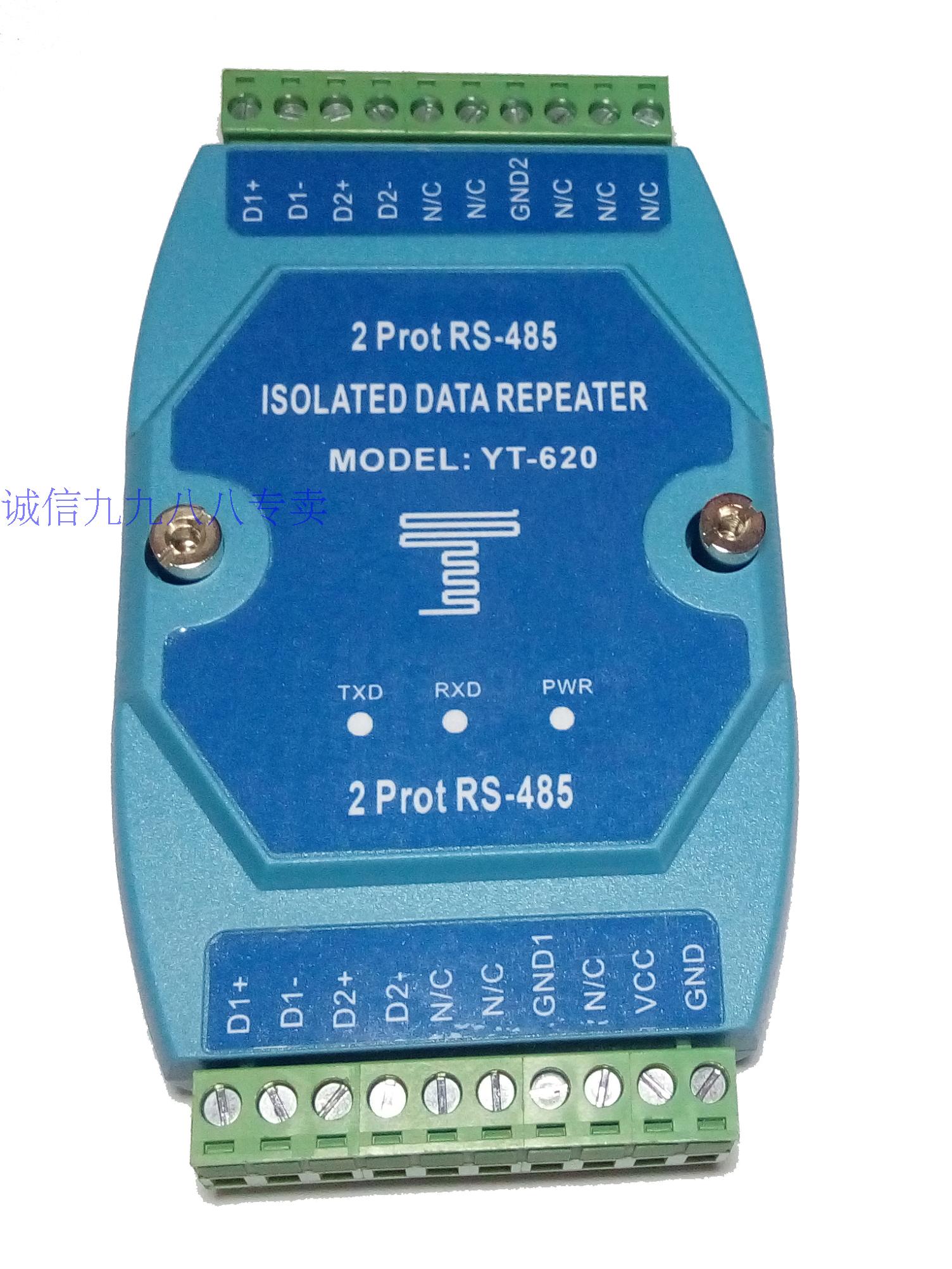 DescriptionYT-620 фотоэлектрическая Изоляция 2 RS485 повторительХарактеристики интерфейса: интерфейс совместим со стандартом EIA/TIA RS-485Электрический интерфейс: RS-485 входной терминал принимает 10-битный клеммный разъем, RS-485 выходной терминал принимает 10-битный клеммный разъем.Уровень защиты: Защита от перенапряжения молнии на каждом конце интерфейса RS-485, 600 Вт на линию и защита ESD +/-15 кв.Изоляция: изоляционное напряжение 2500 Vrms 500DC непрерывный. DC/DC модульРежим работы: асинхронный полудуплексИндикация сигнала: пять сигнальных индикаторов питания (PWR), две передачи (TXD) и два приема (RXD).Средняя передача: витая пара или экранированный проводСкорость передачи: 300-115,2 K BPSРазмер контура: 120 мм x 76 мм x 25 ммИспользование окружающей среды: от-40 с до 85 С, относительная влажность от 5% до 95%Расстояние передачи: 0-5000 м (115200bps-9600bps)