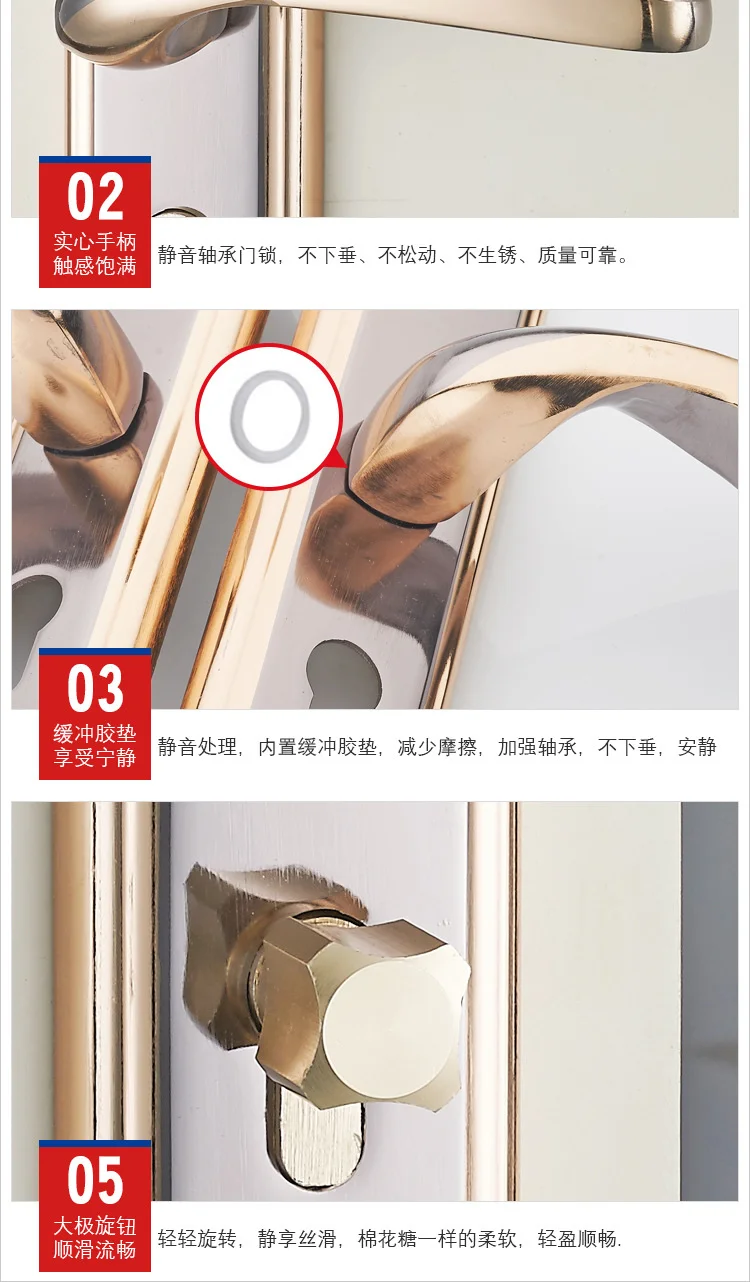 Европейский Новый алюминиевый сплав для спальни деревянный дверной замок аппаратный замок с блокировочным сердечником
