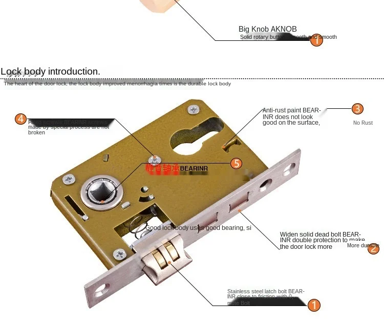 Стальной деревянный подшипник дверной замок для спальни внутренний деревянный дверной замок механический аппаратный замок