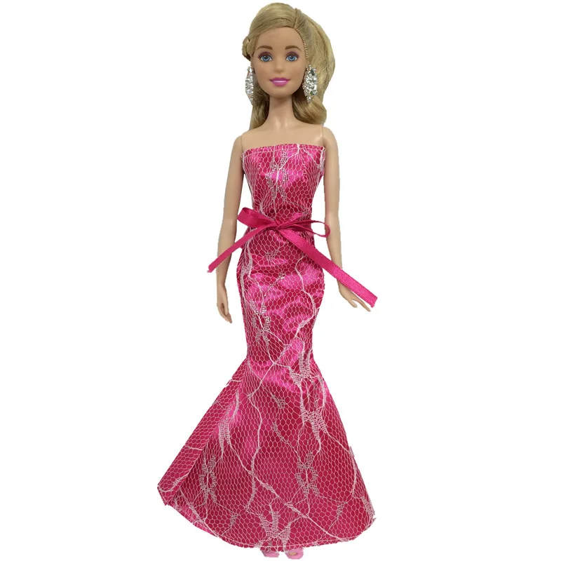 1/6 розовое модное платье русалки «рыбий хвост» для куклы Барби, вечерние платья, вечернее платье на одно плечо с оборками
