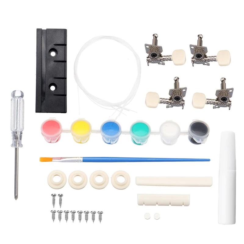 Сделай Сам укулеле, белый деревянный корпус, вы можете окрашивать или окрашивать то, что хотите.