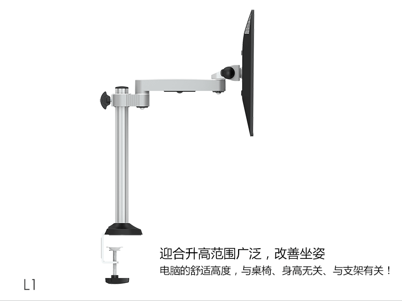 Номер модели: DS-L0/L1/L2 Рекомендуемый размер экрана: 17-27 дюймов Материал: алюминиевый сплав Высота колонна-подставка: 330 мм Макс. Загрузка: 9 кг Наклон: + 90 ° ~ -45 Вращение: 360 ° Цвет: Серебряная обувь Установка: зажим для стола 10-55 мм/крепление для втулки 10-45 мм