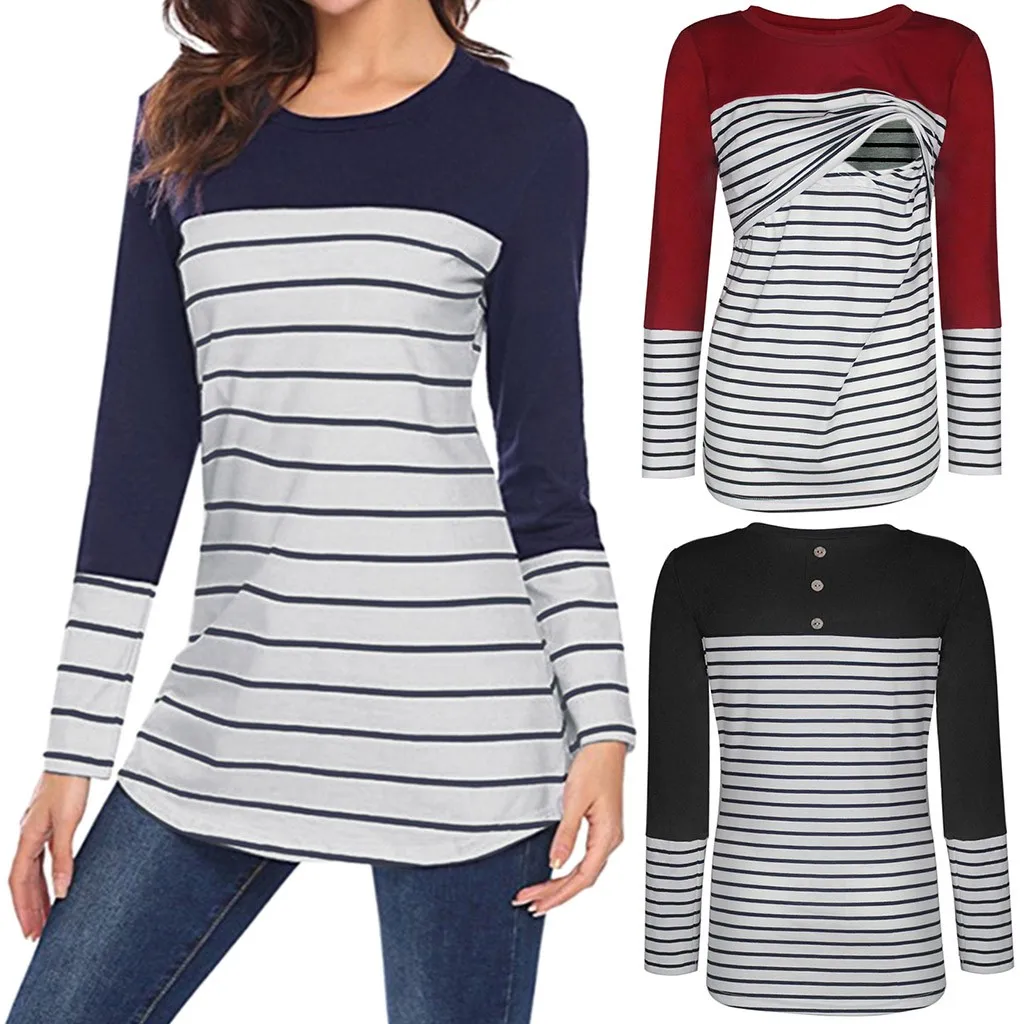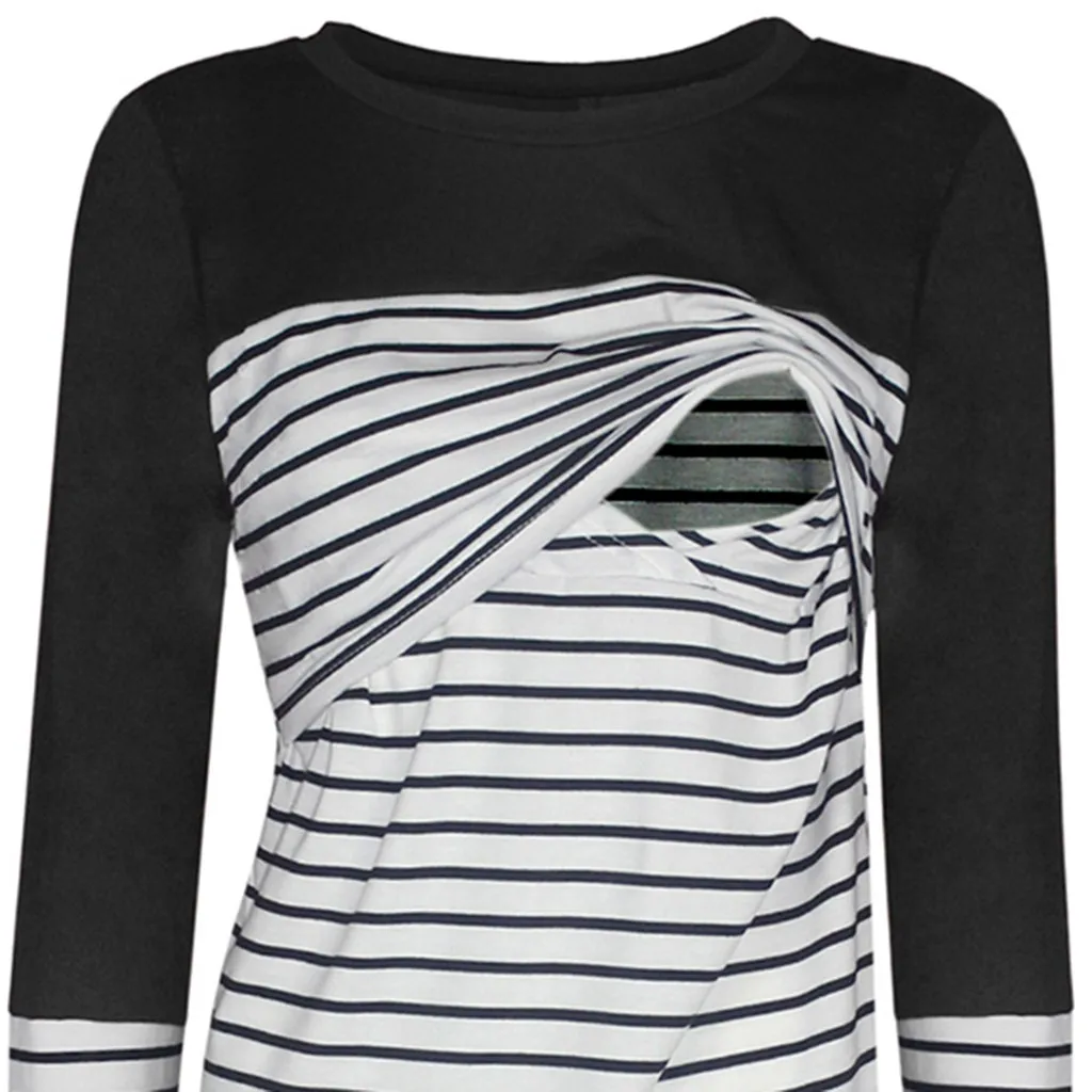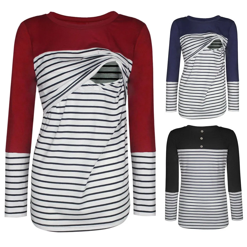 Рубашка MUQGEW, топы для кормящих, для беременных женщин, с длинным рукавом, женское платье с рукавом для беременных, комбинированная полосатая футболка, топ для кормящих детей, одежда