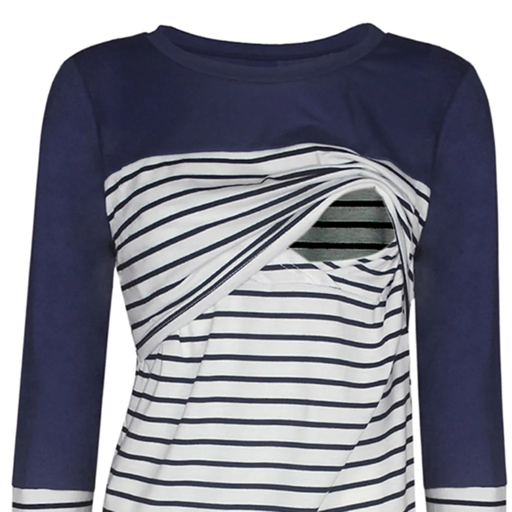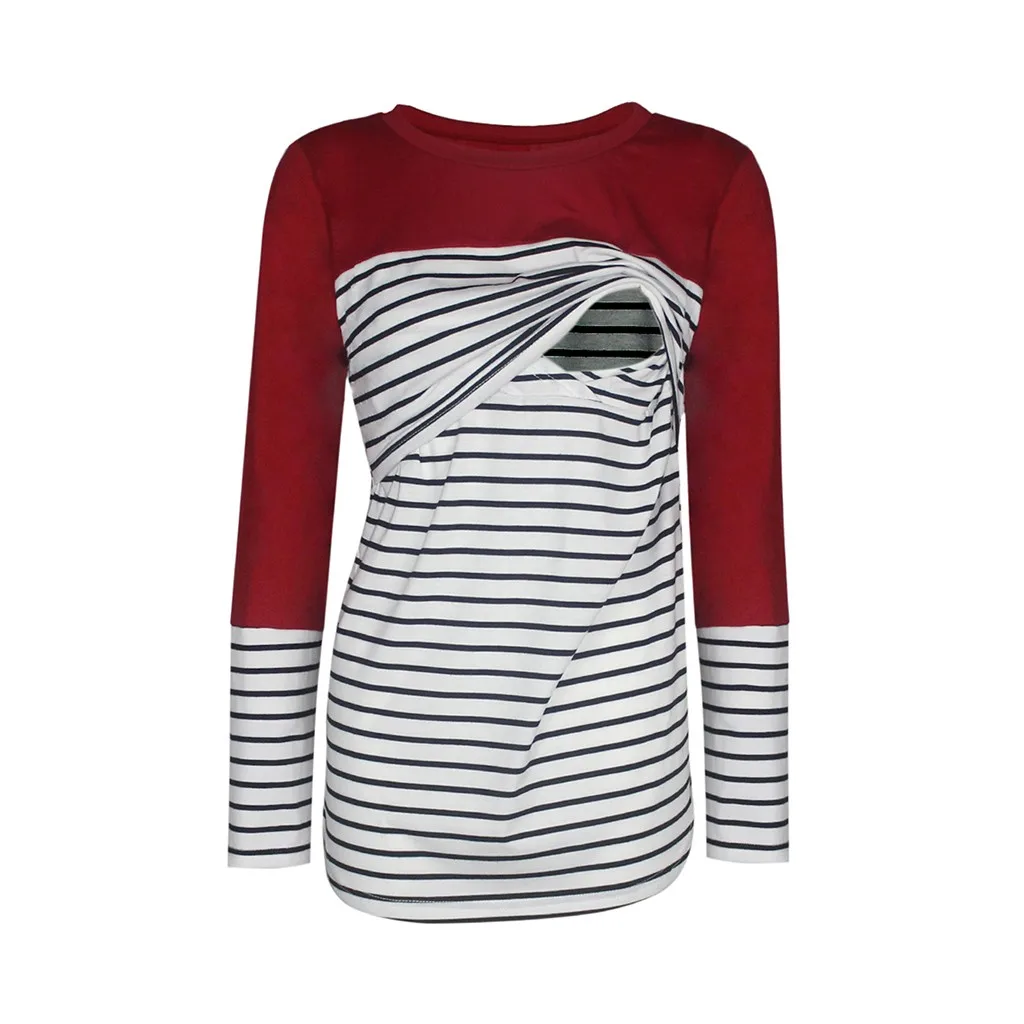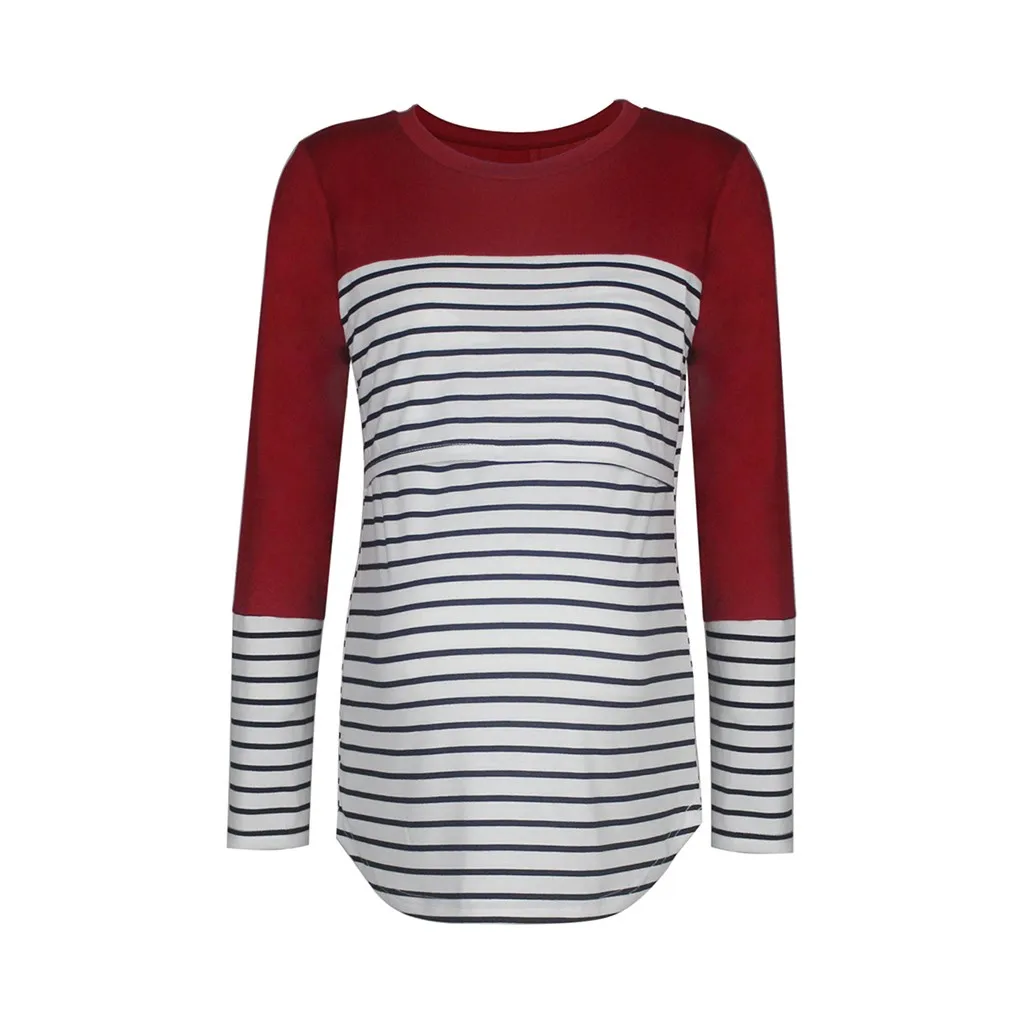 Рубашка MUQGEW, топы для кормящих, для беременных женщин, с длинным рукавом, женское платье с рукавом для беременных, комбинированная полосатая футболка, топ для кормящих детей, одежда