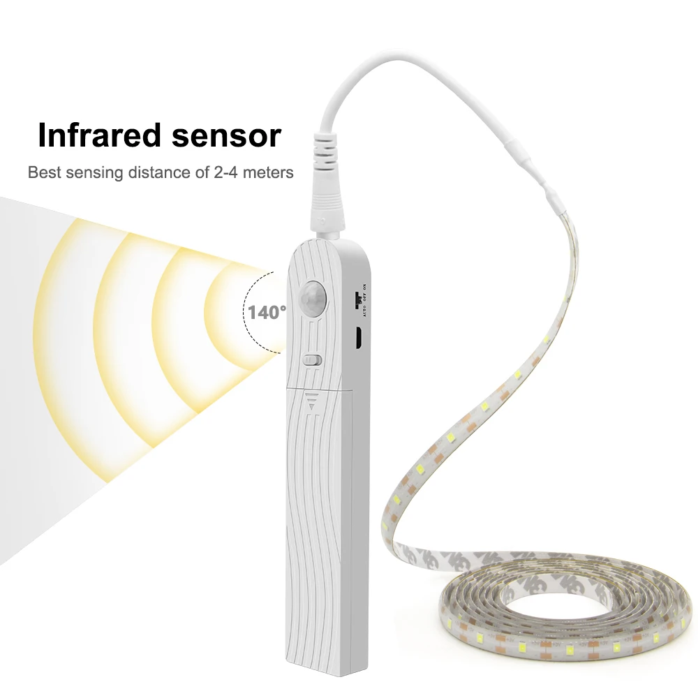 Светодиодный светильник с датчиком движения для шкафа под кроватью, лестницы, шкаф, лампа, лента, водонепроницаемая, 5 В, 1 м, 2 м, 3 м, USB, светодиодный светильник в полоску, ночник