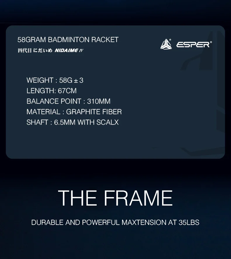 Бренд: ESPER Serise : 58 грамм супер светильник Marerials: графитовое углеродное волокно Вес: 58 грамм ± 2 Баланс: 310 мм ± 2 Вал: супер тонкий 7,0 мм (G3 ) ; 6,5 мм (G4) Ручка: G6 (тонкая) Тип: обидный Рама: 76 отверстий разбивает ветер Технология: Графен Напряжение: 22-32 фунтов Толпа: большинство игроков Рекомендации по напряжению: Ученик: 18-22 фунтов Начинающий: 20-22 фунтов Умеренный: 22-26 фунтов Профессионал: 26-28 фунтов Бесплатные подарки: ☆ Сумка для переноски высокого качества; ☆ Высокое качество овергрип; ☆ Высокое качество, нанизанное цифровой машиной, струнный цвет случайный;