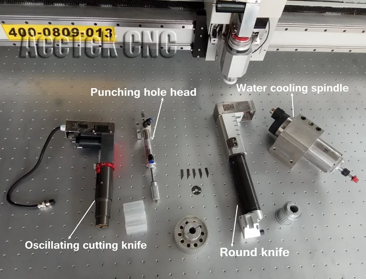 * Функция резки осцилляционного инструмента: может отрезать много различных материалов (таких как гофрированная бумага, картон, офсетная бумага, серая доска, резина, доска с Сотами, ПП, ПЭ, ПВХ, прокладка, кожа, ковры и коврики)