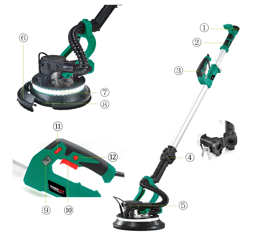 This handheld drywall sander, which designed with self-suction function. Can reduce the dust when sanding. No dust trouble anymore.