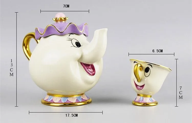 Наслаждайтесь напитками с красивым чайником и чашкой. Также может быть отличным подарком. Материал: керамика Высота Миссис Поттс: около 13 см Высота чипа: около 7 см Высота сахарного горшка : Около 9,5 см Высота часы когсворт : Около 11,8 см Емкость Миссис Поттс: 480 мл Ёмкость Чип: 40 млДоставка: