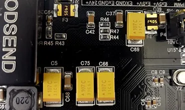 Один конденсатор все еще не на картинке, полностью 5 танталовых конденсаторов, плюс еще 2 шт. индуктивности, полностью учитывая стабильность цепи