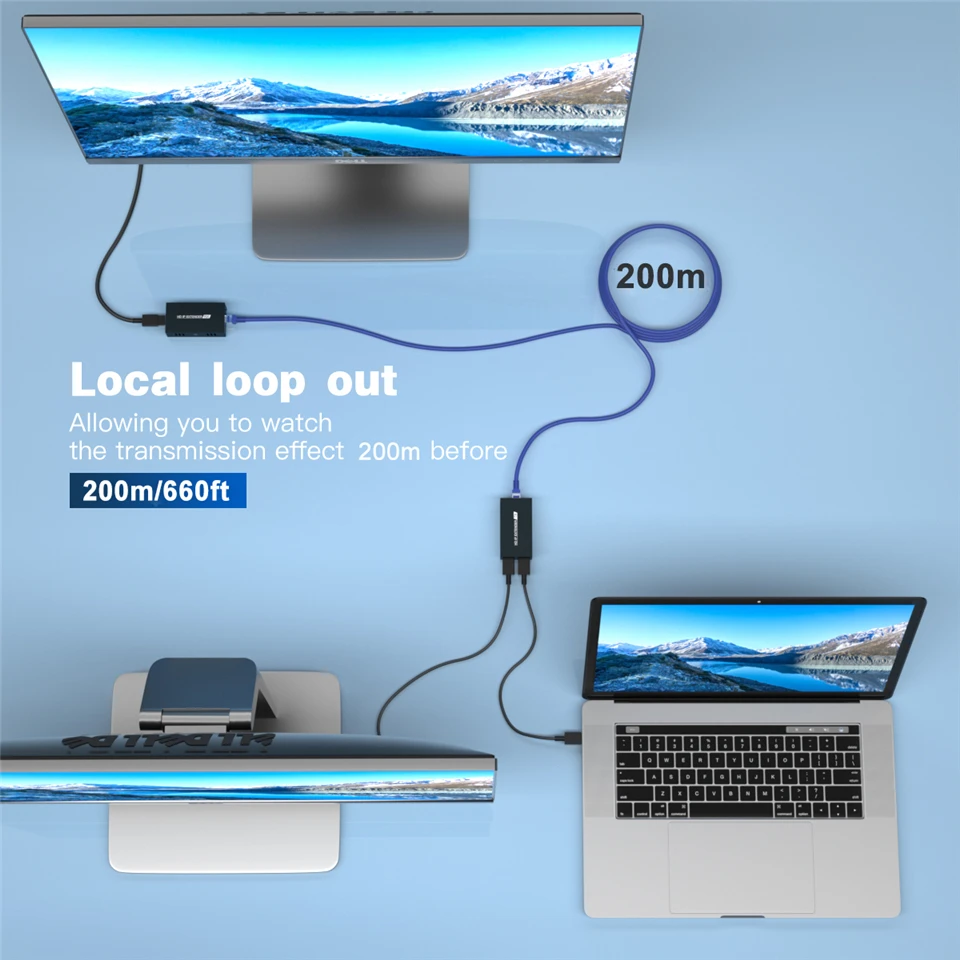 Встроенная система защиты ESD:Сделать передачу намного безопаснее. Идеальный hdmi адаптер расширения для больших домов, заводов, строительных площадок, центров управления данными и т. Д.;Подключи и работай