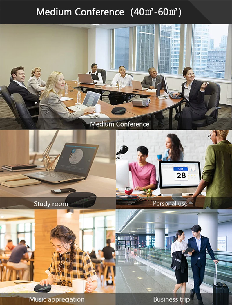 Передовая технология DSP обеспечивает удивительно богатый, кристально чистый звукЗахватывающий звук для звонков и музыки. Испытайте всенаправленный микрофон и HD голос. Идеально подходит для голоса, музыки и мультимедиаЭксклюзивный портативный дизайн, поэтому вы можете быть мобильными с легким дизайном, защитным мешком для путешествий и сроком службы батареи в течение 4 часов в режиме разговора.Подходит для конференц-залов в пределах 60 квадратных метров. Поддержка встреч на месте менее 20 человек.Поддержка 3,5 мм воспроизведение аудио выход, может быть внешний наушники или колонки.Работает с большинством UC, видеоконференций и облачных приложений связи, таких как ZOOM, Vidyo, Webex, Skype для бизнеса, Google hangout и так далее.