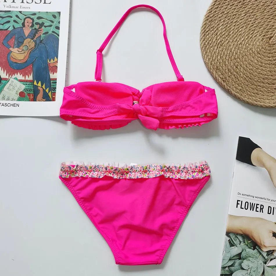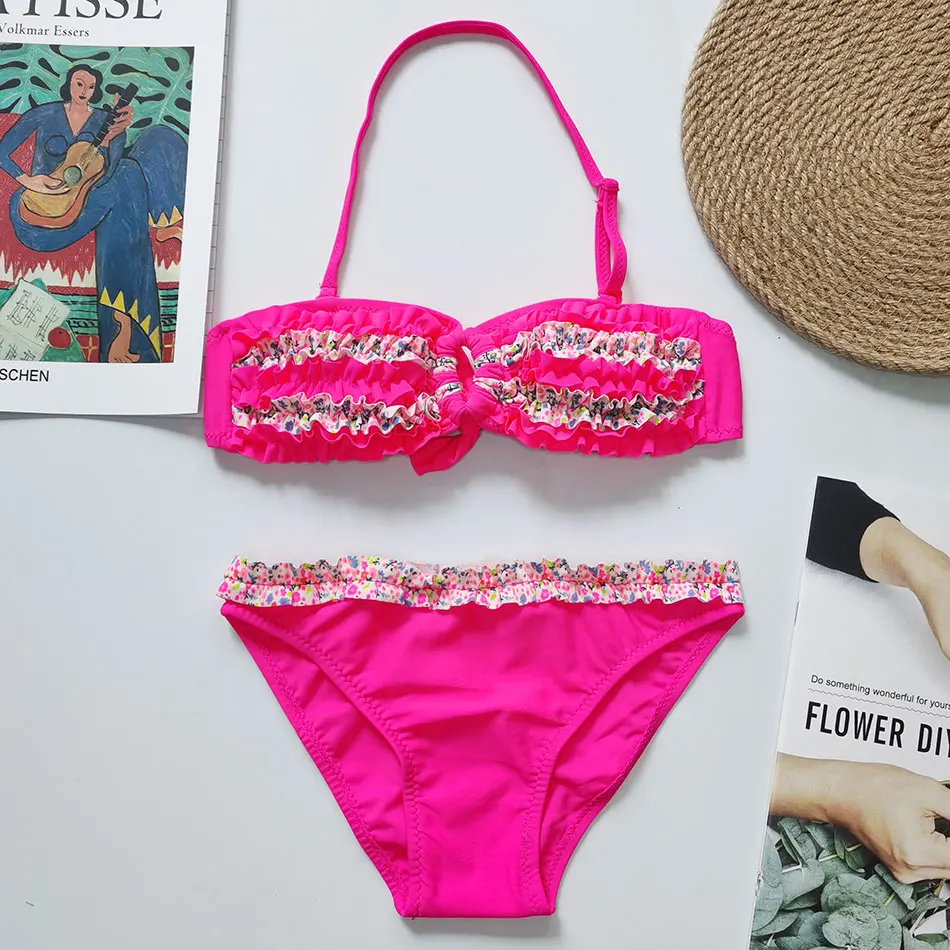 От 3 до 16 лет купальник с рюшами для девочек; Детский комплект из двух предметов; Детский купальник в стиле пэчворк; Комплект бикини для девочек; Купальный костюм для маленьких девочек; Пляжная одежда