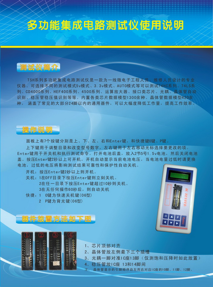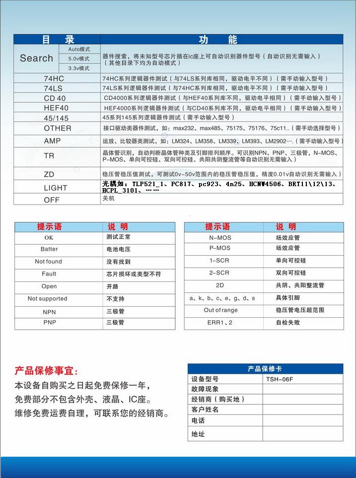 Разница между программатором и тестером: Основной функцией программатора является программирование, а не тестирование устройства. Тестирование Устройства-это просто дополнительная функция. Считывание логического состояния-io. Он не может отличить серию 74HC от серии 74LS и не может отличить разницу между сериями CD4000 и HEF4000. Некоторые люди с небольшим здравым смыслом знают, что серия 74hc и серия 74ls используют различные стандарты логического уровня. Серия CD4000 не полностью эквивалентна сериям HEF4000. Например, CD4068 и CD4078 и HEF4068 и HEF4078 имеют различные логические функции. На такие устройства приходится определенная доля. Цифровой чип в основном имеет стандарт TTL и стандарт COMS, а мастер обслуживания полностью оценивает его в соответствии со стандартом уровня для обеспечения надежности тестирования. Программатор может только проверить правильность своей логической функции и не может проверить порог. Например, если вы используете программатор для поиска 74HC00, программатор будет отображать только 7400, но не сможет отобразить какой стандарт уровня. Программатор не тестируется вообще, когда проверенный чип стареет, возможности привода ухудшаются, и возникают другие мягкие неисправности. Мастер обслуживания оценивается в соответствии с порогом. Точно так же, 74HC00 будет отображаться при поиске 74HC00, 74LS00 будет отображаться при поиске 74LS00, иначе чип LS будет считаться повреждением чипа в режиме HC! И так далее и наоборот. Обратите внимание: тестер без порогового определения не имеет практического смысла. Принцип проектирования этой машины состоит в том, чтобы служить индустрии обслуживания наиболее надежным методом тестирования. Пожалуйста, не сравнивайте эту машину с простым модельным тестером. Цифровые и аналоговые чипы внутри машины используют до 12 штук! Также есть большое количество резисторов, транзисторов, индукторов и так далее. Все только для самого надежного теста!