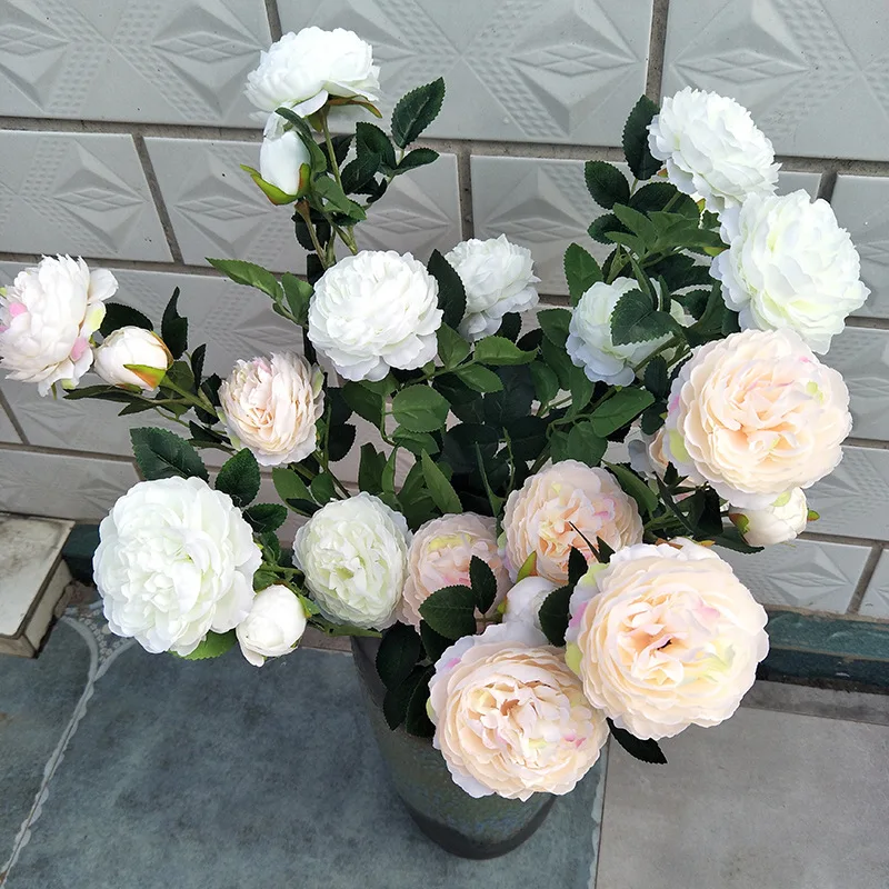 Наименование товара: Искусственный Пион (3 цветка) Размер: 60 см Материал: шелковая ткань, пластик, железная проволока. Цвета: белый, оранжевый, желтый, красный, синий, розовый, светильник При заказе более 5 штук скидка 20%. Он будет автоматически снижен системой, если вы закажете его более 5 штук.