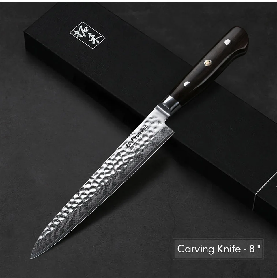 TURWHO объединил этот комплект из четырех предметов с красивой темно-эбеновой ручкой, чтобы дополнить и показать элегантную сталь. Эргономичная ручка имеет удобную рукоятку, которая делает резку легким и болезненным запястьем в прошлом.В комплект входит 8,2-дюймовый нож шеф-повара, 7-ми дюймовый нож Santoku, гироборд с колесами 8 дюймов нож для нарезки, а также 6 дюймовУтилитаНож. Прочное Лезвие отличается высококачественной японской VG-10 дамасской стали с высокоуглеродистой сердцевиной, окруженной 66 слоями сложенной дамасской стали. Изготовленные для прочности и красоты, ножи имеют естественную антипригарную поверхность, что позволяет легко нарезать травы и чеснок или лук.