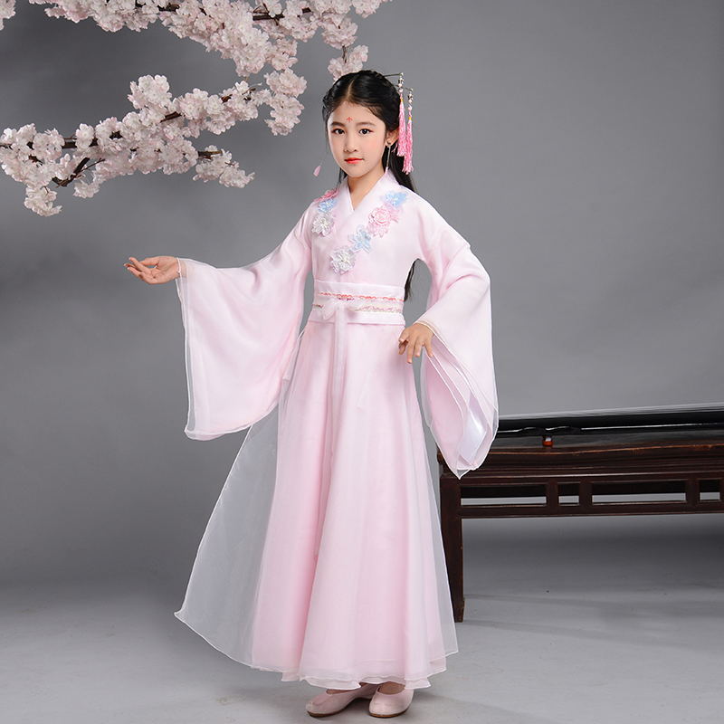 Детская одежда для девочек от 6 до 7 лет, танцевальный костюм феи ханьфу Тан платье принцессы в древнем китайском стиле для маленьких девочек