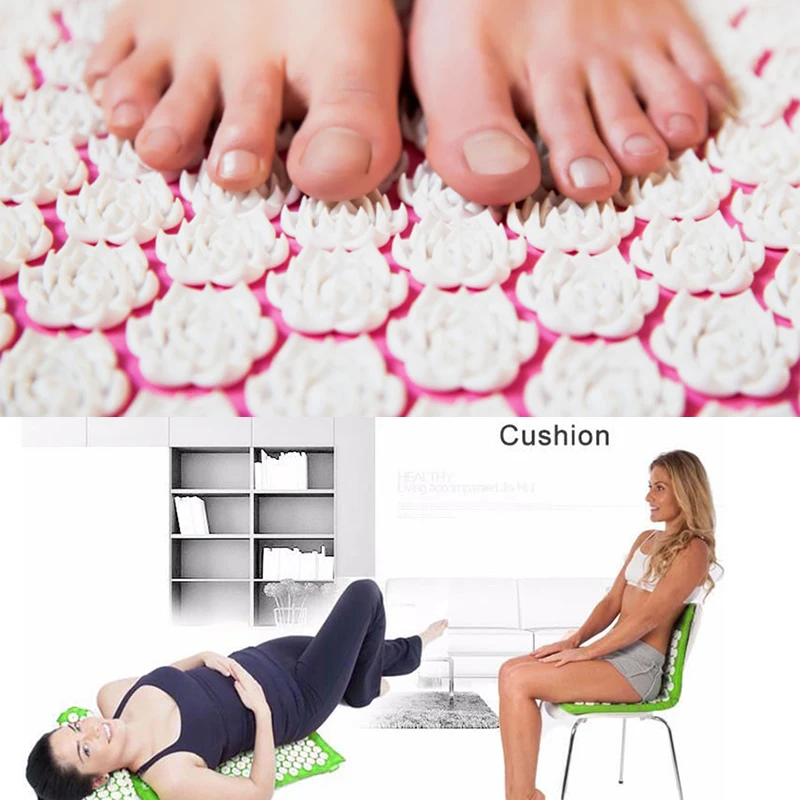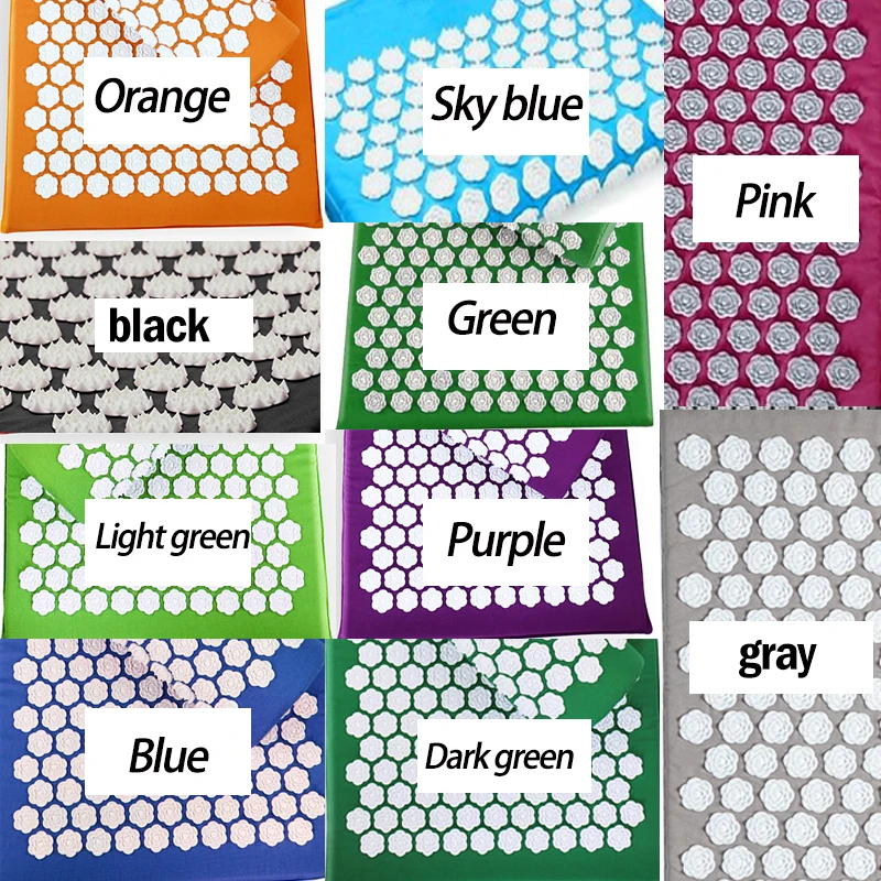 Цвет: 12 цветов на выбор Материал: АБС, нейлон, губка Размеры: опорные подшипники скольжения подушки: 14,6x5,5x3,9 дюймов; Подкладка: 26,7x16,5x0,6 дюймов Вес: 0,35 кг (подушка); 0,55 кг (прокладка) Акупрессурный точечный коврик и набор подушек имеет в общей сложности 7575 акупунктурных точек