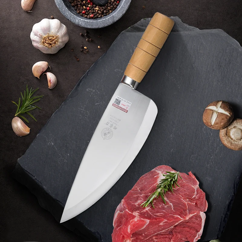 Традиционное ремесло делает нож собственным толстым задним тонким краем для увеличения силы резания. Коническое лезвие, тонкий край, острый и прочный, легко измельчить, легко скрепить мясо.