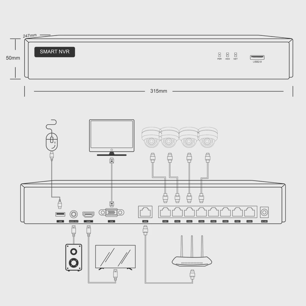 1. 8CH POE H.265 NVR * 1 (клиент может добавить больше камер в будущем)