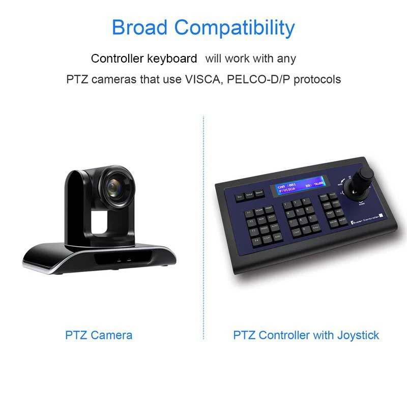 О: есть RS232, RS485 PTZ контроль, а также поддержка VISCA, PELCO-P, PELCO-D для управления через ваш кодек или ПК через RS232, и поддержка ИК-пульта дистанционного управления.