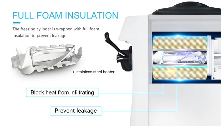 5.Brand new stainless steel beater goes more tightly with cylinder, producing more creamy and softy Ice cream.
