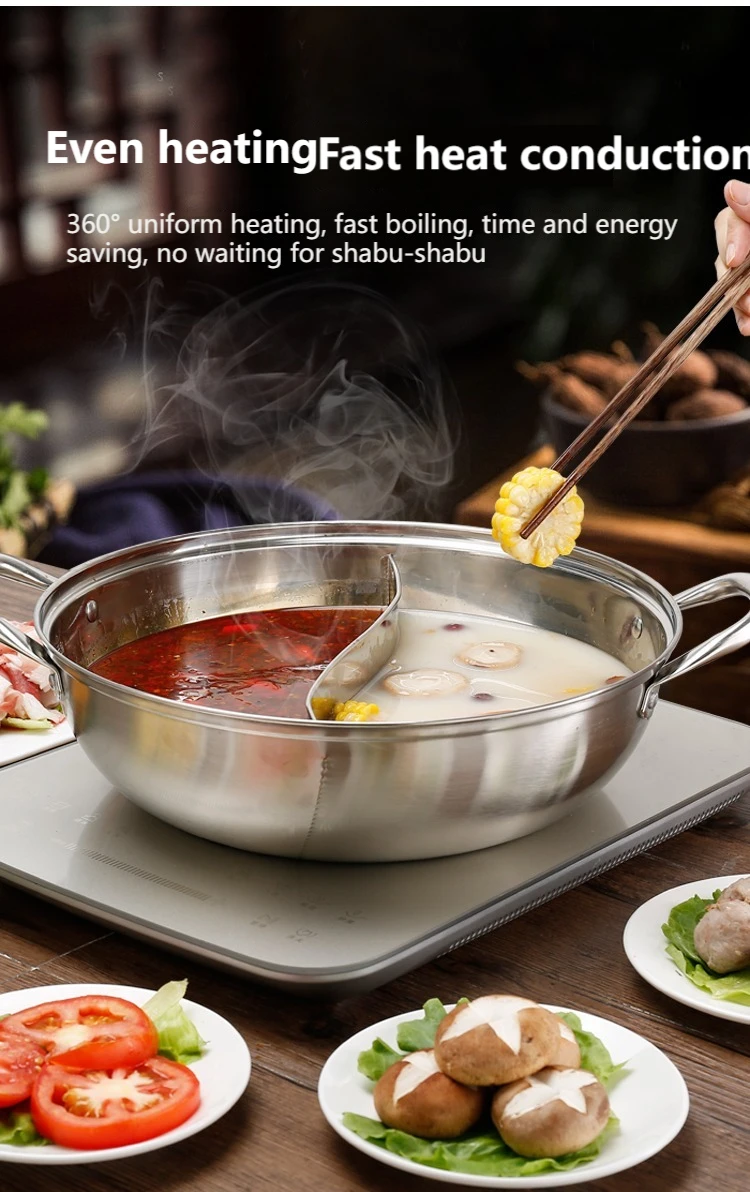 Нержавеющая сталь горячий горшок 2 отсеков ароматизатор разделенная индукционная плита полировка суп кастрюля для приготовления пищи Полезная домашняя кухонная посуда
